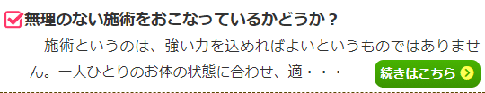 得意とする分野は整骨院によって異なるため、自身のお悩みがその整骨院の得意分野かどうかを確認してみることがおすすめです。