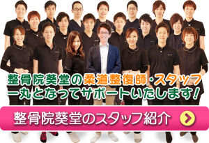 整骨院葵堂のスタッフのご案内ページです。院長や各スタッフのメッセージをご覧いただけますので、よろしければご覧ください。