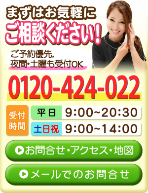 ★20:00~20:30は事前予約の自動車事故施術のみ受付。