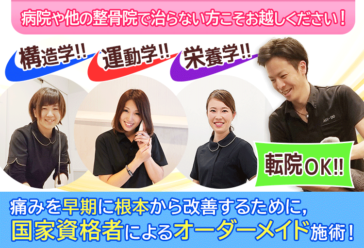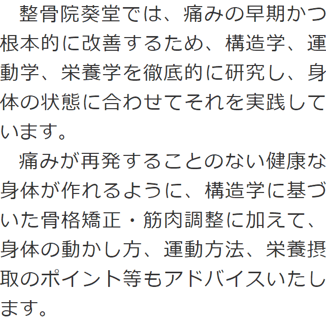整骨院葵堂が選ばれる理由について説明しております。当院には様々な強みがありますので、整骨院をお探しでしたら当院への通院をご検討ください。