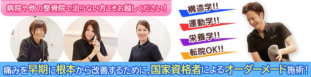 確かな技術を持つスタッフが一人一人のお身体の状態に合わせて施術を行っていきますので、富士宮で整骨院をお探しでしたら、当院へご相談ください。