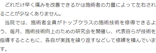 得意とする分野は整骨院によって異なるため、自身のお悩みがその整骨院の得意分野かどうかを確認してみることがおすすめです。
